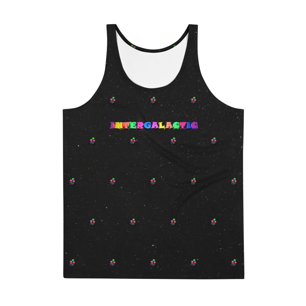 This "INTERGALACTIC" Spaced Out Alien Patterned Unisex Tank Top features a patterned print of the alien puffer critters found on the single’s cover art and is super smooth and super comfortable to wear! Made from a cotton touch polyester jersey that won’t fade after washing.